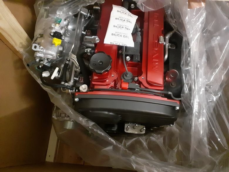 Mitsubishi Lancer Evo IX Engine crated assembly. These are the final last couple of brand new crated original equipment engines complete with ancillaries including exhaust manifold and latest correct specification homologated GSR Inconel turbocharger 49378-01580, inlet manifold with sensors, coils, alternator, flywheel and clutch assembly.(Flywheel, Standard clutch & cover, Alternator, Water pump, Timing gear inc belts & covers, Oil Filter housing & Oil Filter, Inlet manifold inc 4 x injectors, Air temp sensor, Map sensor, Throttle body including TPS Sensor & idle motor, Ignition Coils