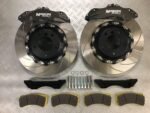 380mm Brake kit comprising of AP Racing CP9660 6 pot Pro 5000 Radi-Cal race calipers,directional 380×32 rotors, AP Racing disc to bell fixings, Reyland billet alloy CNC machined bells / brackets, Pagid RS29 pads, braided hoses and all required fixing bolts.