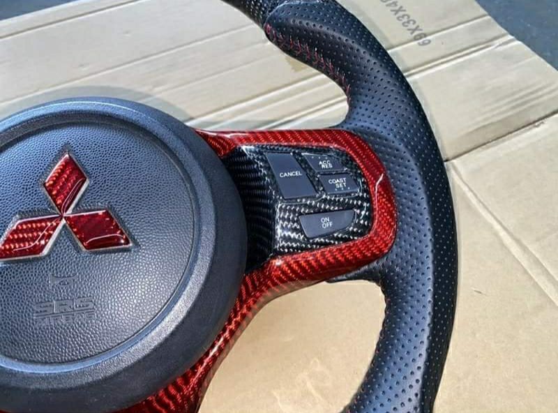 Carbon fiber Evo X steering wheel is compatible with Lancer E,Ralliart, GLX,GTE,GSR,CE
